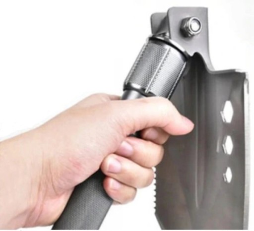 Bardzo solidna i wytrzymała saperka z rozkręcaną aluminiową rękojeścią o chropowatej strukturze ułatwiającej chwyt i pewność trzymania.