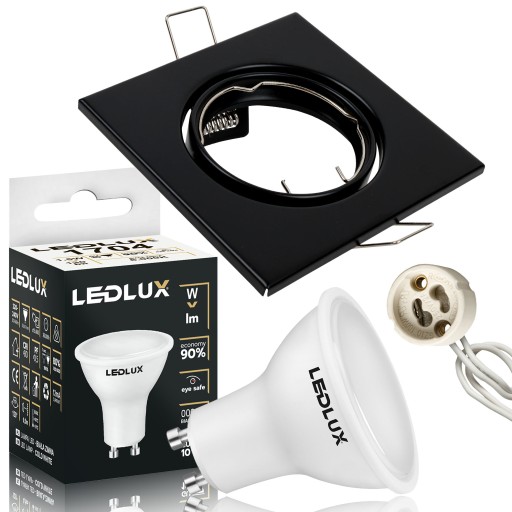 Zestaw 1x Oprawa halogenowa ruchoma kwadratowa czarna+ Żarówka LED 10W + Gniazdo ceramiczne GU10