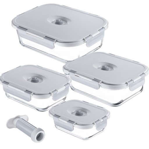 POJEMNIKI NA ŻYWNOŚĆ SZKLANY ZESTAW POJEMNIKÓW PRÓŻNIOWE 4x LUNCHBOX POMPKA