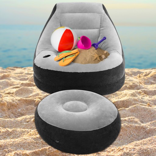 ✅ DMUCHANY FOTEL + PODNÓŻEK – KOMPLET W JEDNYM ZESTAWIE