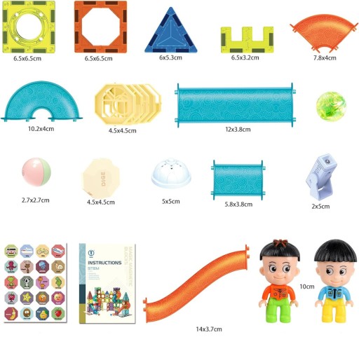 KLOCKI MAGNETYCZNE LED 3D 2D Tory Kulkowe Dla Dzieci 202 elementy Light Magnetic Blocks