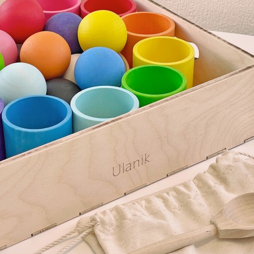 Деревянная игрушка Монтессори "Шары в чашках больших" для самых молодых