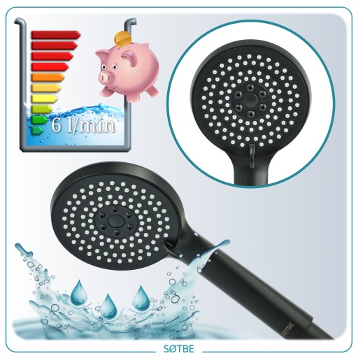 WODOOSZCZĘDNA i bezpieczna dla wanny słuchawka prysznicowa 5-zakresowa SOTBE LARK NAVIA NERO z systemem ANTI CALC. Kolor CZARNY. Prezentujemy Państwu wyjątkową słuchawkę prysznicową SOTBE LARK NAVIA NERO w kolorze czarnym. Ta pięcio-zakresowa słuchawka z systemem anti calc to idealny wybór dla osób, które cenią sobie jakość i wygodę podczas kąpieli. System anti calc chroni przed osadzaniem się kamienia, co przyczynia się do dłuższej żywotności urządzenia. Wysokiej jakości materiały użyte do produkcji zapewniają trwałość i estetykę. Dzięki aż pięciu różnym zakresom strumienia wody, możesz wybrać idealny tryb, który najbardziej Ci odpowiada. Od delikatnego i relaksującego deszczu, przez energetyczny i pobudzający strumień, po precyzyjny i skoncentrowany strumień - masz pełną kontrolę nad swoją kąpielą.