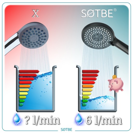 ✅Efektywność – nasza słuchawka zużywa tylko 6 litrów wody, aż o 60% mniej niż standardowe modele.