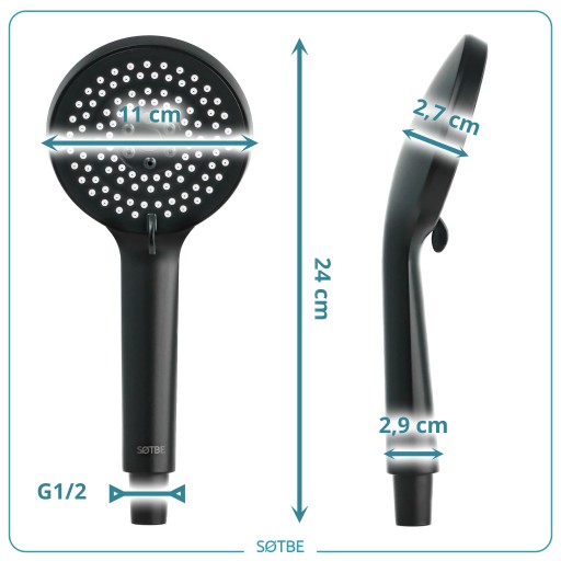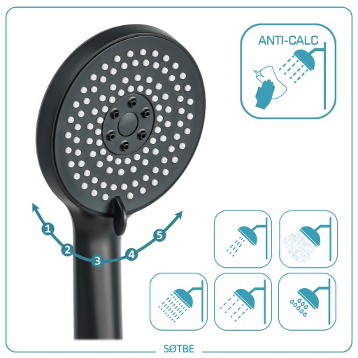 SOTBE LARK NAVIA NERO Słuchawka prysznicowa 5 zakresowa