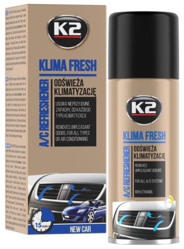 K2 KLIMA FRESH to niezwykle skuteczny i łatwy w użyciu środek do odświeżania klimatyzacji. Usuwa nieprzyjemne zapachy, które powstają na skutek zanieczyszczeń i wilgoci w układzie wentylacyjnym. Cały proces nie zabiera więcej niż kilkanaście minut. Nadaje się do każdego typu klimatyzacji. Po użyciu pozostawia świeży cytrynowy zapach.