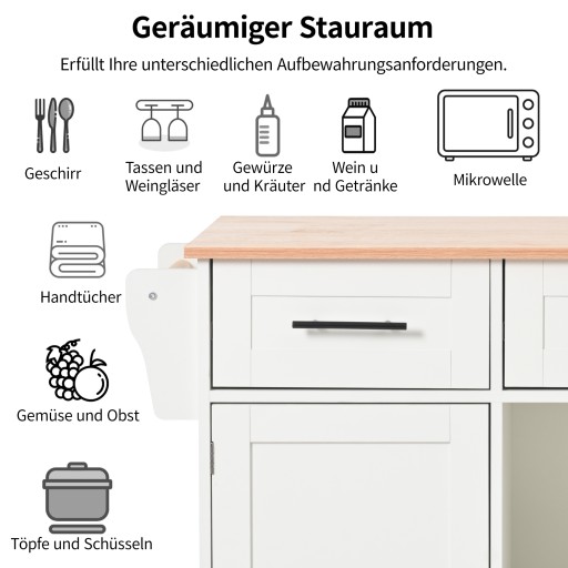 Wysokiej klasy wózek na wyspę kuchenną (składany blat + wielofunkcyjny schowek)