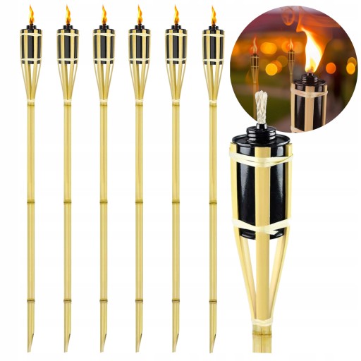 ZESTAW 6x BAMBUSOWYCH POCHODNI Z OLEJEM