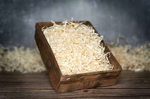 - KOSZYK RĘCZNIE PLECIONY Z ŁUBY SOSNOWEJ WYPEŁNIONY PACHNĄCĄ WEŁNĄ DRZEWNĄ
