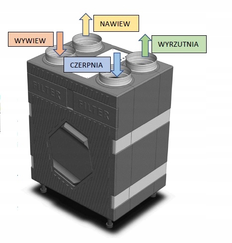CZERPNIA/WYRZUTNIA – Czerpnia służy do dostarczenia świeżego powietrza z zewnątrz budynku, natomiast Wyrzutnia służy do wyrzucania powietrza zużytego,