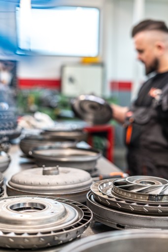 Zarówno w samej skrzyni automatycznej, jak i niektórych typach konwerterów znajdziemy tarcze cierne. Zbyt wysoka temperatura potrafi gwałtownie zapiec tarcze, doprowadzając do zablokowania działania skrzyni. Wymiana tarcz to podstawowa czynność serwisowa w trakcie regeneracji sprzęgła hydrokinetycznego. Należy pamiętać, że już niewielka ilość wody w oleju bądź glikolu z układu chłodzenia spowoduje rozwarstwienie okładziny ciernej. Ta musi być bezwzględnie wymieniana nie tylko w sprzęgle, ale także w całej automatycznej skrzyni biegów. Zaniechanie tej czynności spowoduje unieruchomienie pojazdu w bardzo krótkim czasie po naprawie.