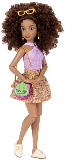 - Wysoka jakość wykonania: Lalka zachwyca detalami (np. motywy z animacji Zaplątani na spodniach, koszulce i torebkach) oraz starannie uszytymi ubrankami. Wykonana z bezpiecznych materiałów.
