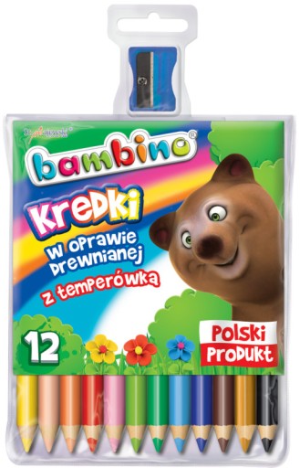 BAMBINO MIĘKKIE KREDKI GRUBE 12 Kolorów JUMBO PORĘCZNE OPRAWA DREWNIANIA