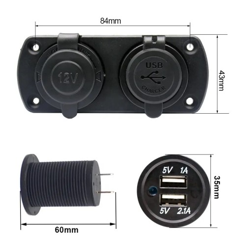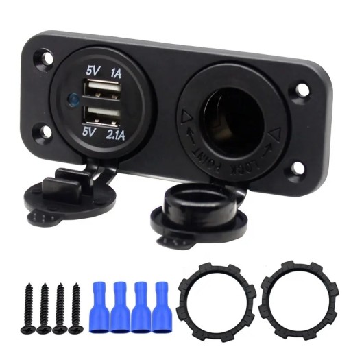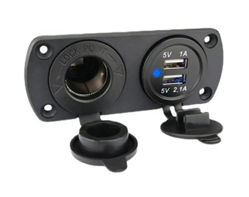 GNIAZDO ZAPALNICZKI + ŁADOWARKA 2x USB 3,1A