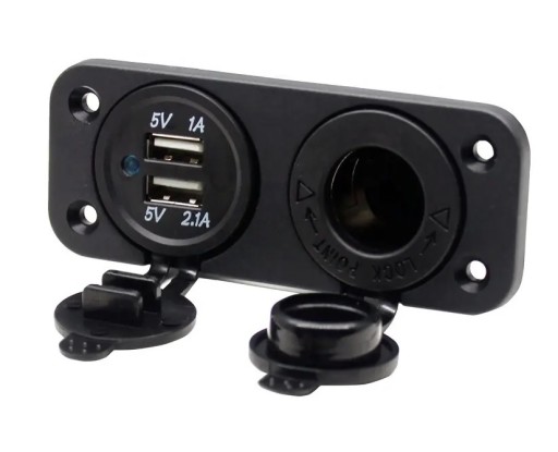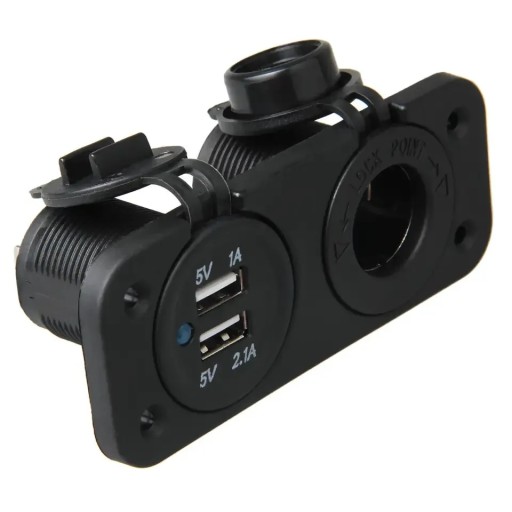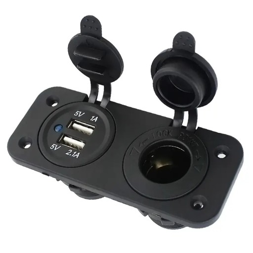 Panel składa się z gniazda zapalniczki i dwóch portów USB szybkiego ładowania o napięciu 5V 3.1A (2.1A + 1A).
