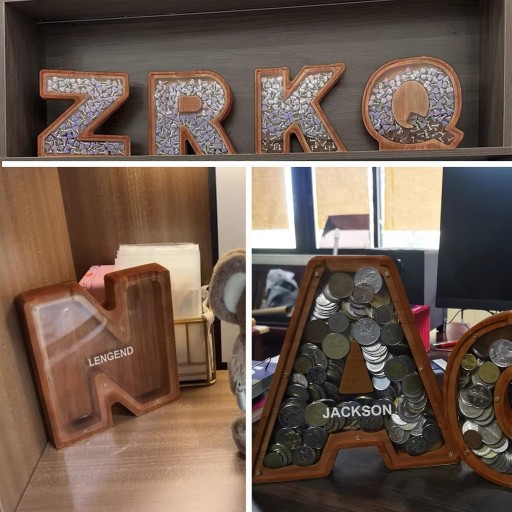 Ta skarbonka to idealne połączenie naturalnego drewna i płyty akrylowej. Jest nie tylko gustowna, ale również przyjazna dla środowiska i nietoksyczna. Wytrzymała konstrukcja zapewnia stabilność na każdym stole. Z 26 literami do wyboru, te skarbonki są zaprojektowane tak, aby sprawiać radość. Każda skarbonka jest pokryta akrylową płytką, dzięki czemu poszczególne osoby mogą wybrać swoje ulubione litery i rozpocząć spersonalizowane oszczędzanie z tą skarbonką. Taką skarbonę nie tylko możemy zakupić dla siebie ale również jest świetna jako prezent.
