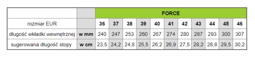 - Wzmocnienia: nosek i zapiętek wzmocniony warstwą poliuretanu
