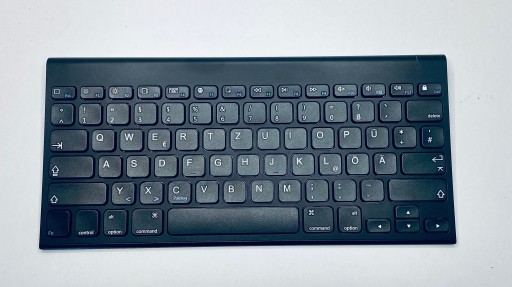 Klawiatura ma niemiecki układ QWERTZ – różni się od standardowego QWERTY (np. zamiana Z/Y, znaki specjalne). Idealna dla osób piszących po niemiecku lub uczących się języka.