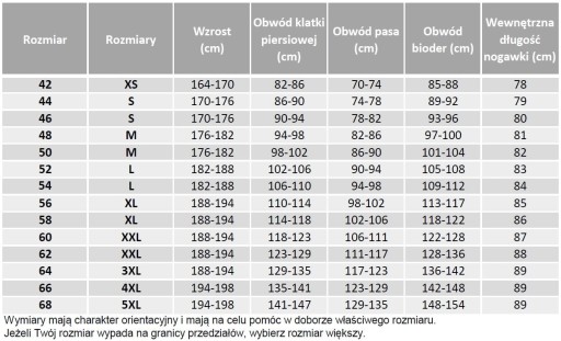 - dostępna jest w szerokiej gamie rozmiarów i w wielu różnych, atrakcyjnych kombinacjach kolorów, wraz z możliwością wydłużenia spodni nawet o 5 cm.