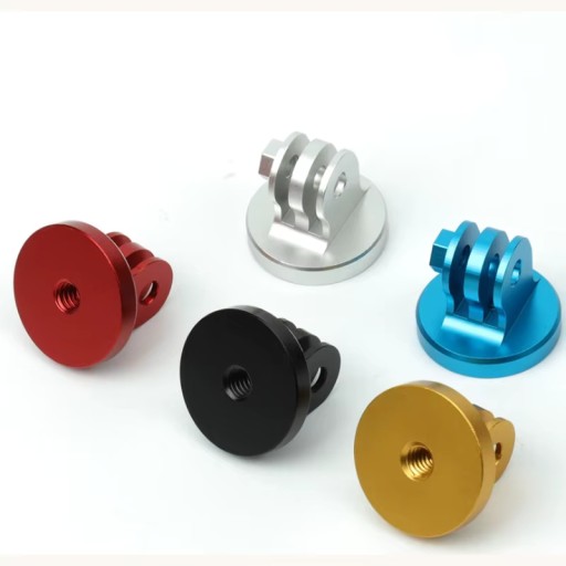 Adapter posiada gwint, w który można wkręcić standardowe śruby od systemu mocowań dedykowanego do kamer GoPro. Dzięki czemu nie potrzebujesz nakrętki.