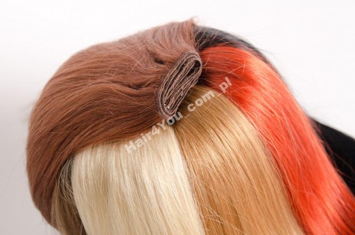 Włosy proste wszyte na taśmę materiałową, którą można wykorzystać na wiele sposobów.