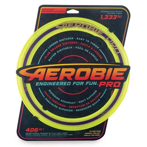 W grach dyskowych nic nie może się równać z wydajnością Aerobie Pro Ring. Dysk ten został wykorzystany przy pobiciu rekordu świata w rzucie. Dysk przeleciał niesamowite 406 metrów. Dzięki cienkiej konstrukcji i 33cm średnicy możliwe jest rzucanie dyskiem w taką odległość. Dodatkowo posiada miękkie brzegi, aby mógł się wygodnie łapać. Pusty środek pozwala każdemu graczowi mieć własny styl rzucania i łapania. Dostępne w różnych kolorach, sprzedawane oddzielnie. Uwaga: ten dysk nie unosi się na wodzie. Wiek 12+.