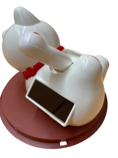 PORUSZA ŁAPKĄ – kot zasilany jest ogniwem solarnym, działa przy świetle -w pokoju mieszkalnym jak najbardziej się sprawdza