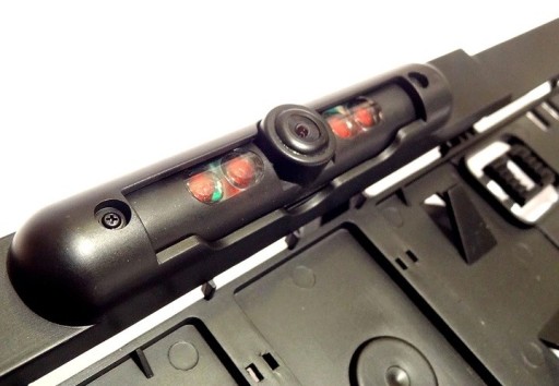 Uniwersalna kamera cofania wmontowana w ramkę tablicy rejestracyjnej. Pasuje do każdego modelu samochodu osobowego, dostawczego oraz TIR. Urządzenie podłącza się do dowolnego monitora z wejściem video. Uruchamianie kamery następuje w momencie załączenia biegu wstecznego. Obiektyw kamery regulowany w pionie.