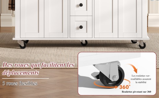 ✅Przemyślana przestrzeń do przechowywania o przejrzystej strukturze:Dwie szerokie szuflady w górnej sekcji umożliwiają szybki dostęp do sztućców i przyborów. Pod spodem znajdują się dwie przestronne szafki z półkami o regulowanej wysokości i trzema szufladami w centrum - wszystko jest uporządkowane i od razu pod ręką.