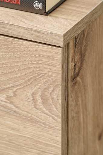 Połączenie ciepłego Dębu Viking z eleganckim Kaszmirem i kontrastującą czarną ramką witryny wprowadza wyjątkową estetykę do każdego wnętrza. Wbudowane oświetlenie LED tworzy nastrojowy klimat i podkreśla eksponowane elementy. To mebel, który wprowadza do wnętrza harmonię i styl, a przy tym oferuje wygodę codziennego użytkowania.