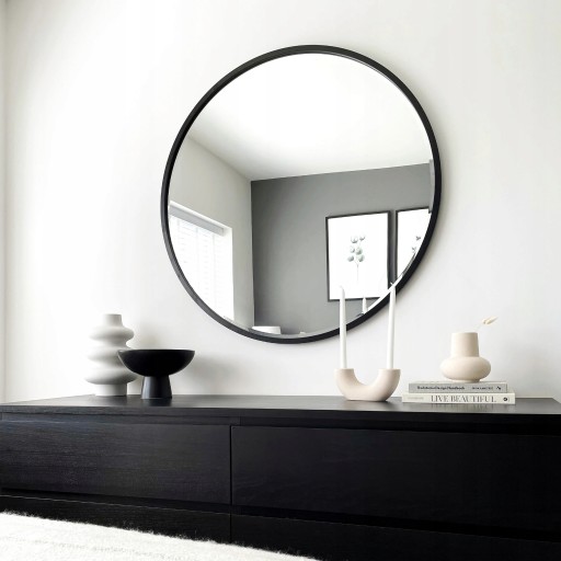 ELEGANCKIE LUSTRO OKRĄGŁE 70 CM W CZARNEJ RAMIE - DO POWIESZENIA W SALONIE, ŁAZIENCE, PRZEDPOKOJU LUB BIURZE
