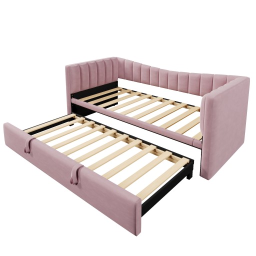 90x200cm Pink Velvet Daybed w/ Pull-Out, Expands to 180x200cm