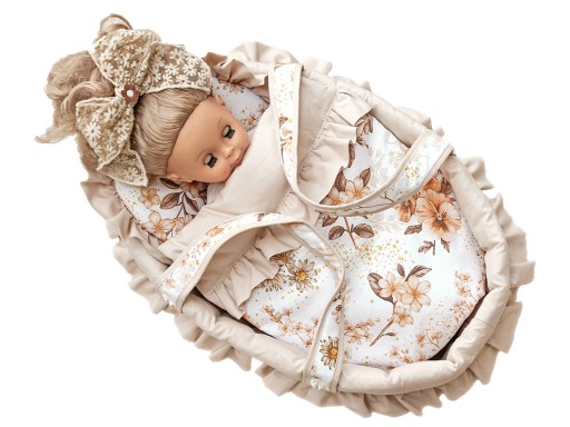 NOSIDEŁKO z pościelą dla lalek KOMPLET