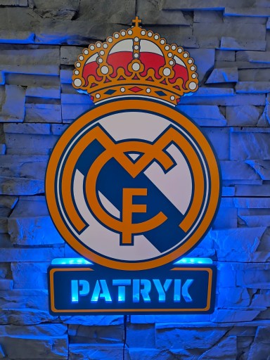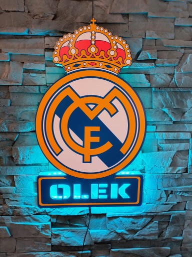 REAL MADRYT Lampka Nocna LED Obraz Drewniany Herb Piłkarski Prezent RGB Personalizowana z dowolnym imieniem