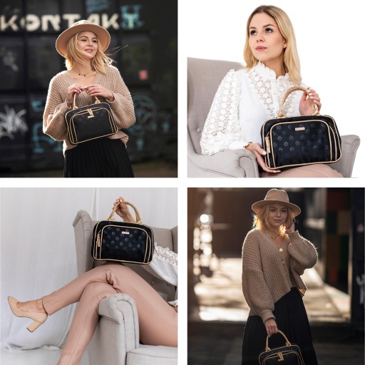 - Połączenie czerni i złota podkreśla ekskluzywny charakter całej kolekcji kosmetyczek Blossom.