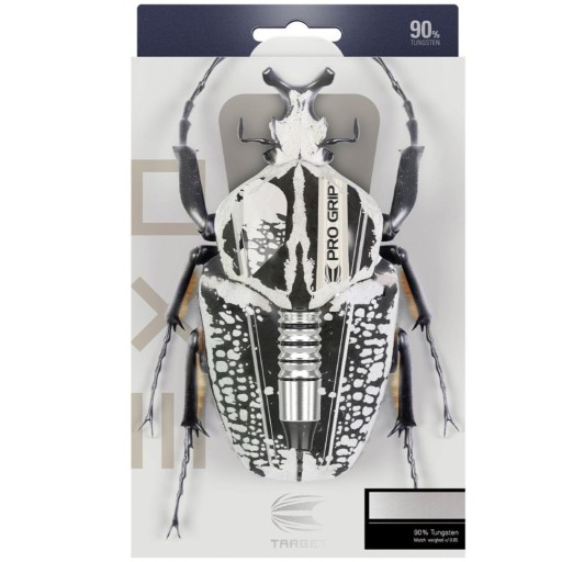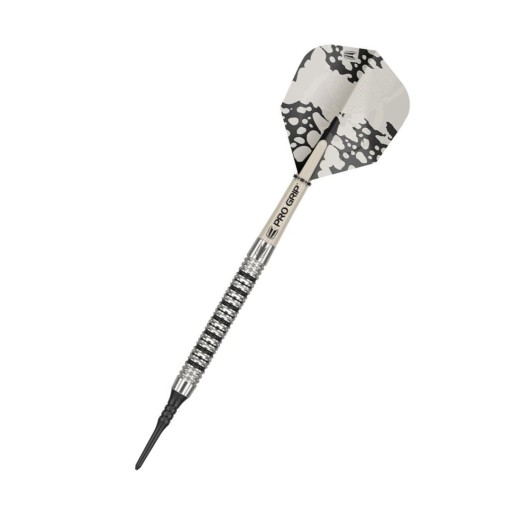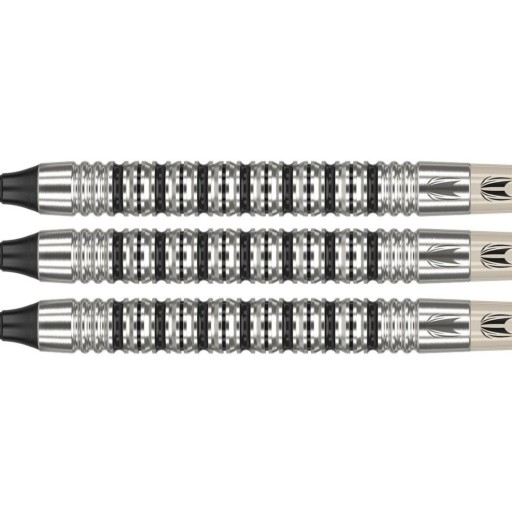 Soft wolframowe rzutki Exo (90% tungsten) to rzutki w wyjątkowym designie. Baryłki podkreślają czarne żłobienia. Beczki są uzupełnione trzonkami Pro Grip i lotkami Target.