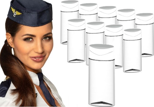 10 szt. POJEMNIK BUTELKA PODRÓŻNA DO SAMOLOTU 100ml DO BAGAŻU PODRĘCZNEGO.