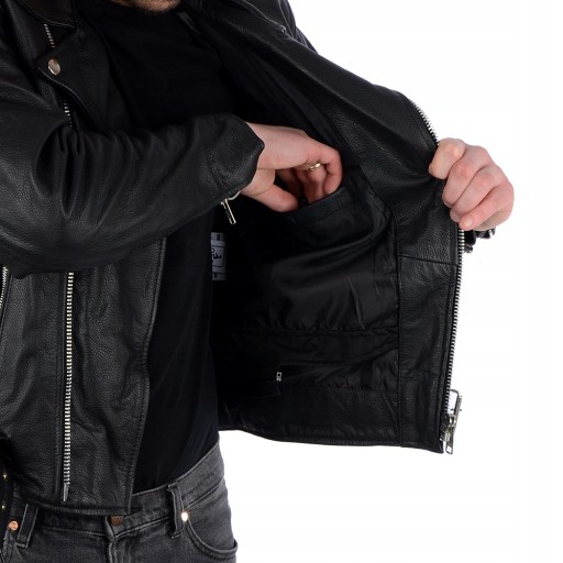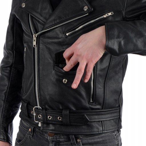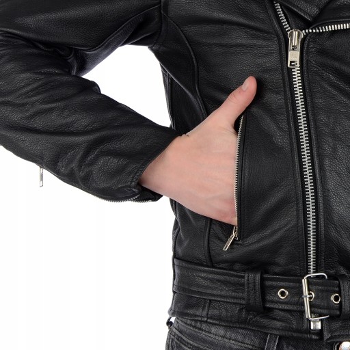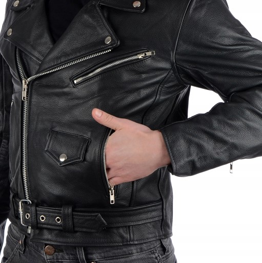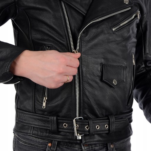 Wysokiej jakości skórzana kurtka motocyklowa "Ramoneska". W całości wykonana z wysokiej jakości skóry bydlęcej. Kurtka posiada aż 6 kieszeni (4 wewnętrzne i 2 zewnętrzne). Nasze ramoneski są bardzo dobrze wykonane, co poświadcza grono zadowolonych użytkowników.