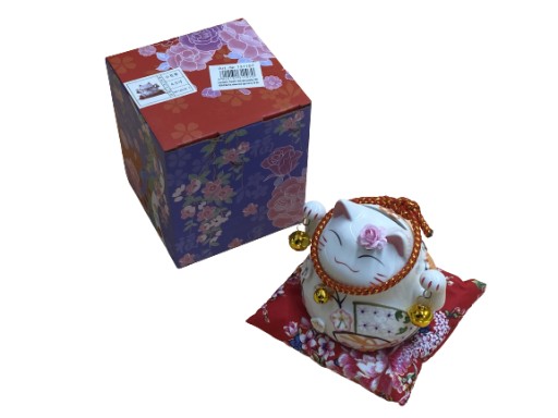 PORCELANOWY Japoński Kot Maneki-Neko Chiński Kot Szczęścia 12cm