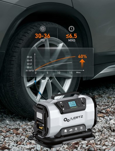 Nowoczesny kompresor samochodowy, rowerowy LERTZ™️z wbudowaną dmuchawą do pompowania materaca to idealne rozwiązanie dla każdego kierowcy. Przydatny w garażu, samochodzie, w domu czy na wyjeździe. Zapewnia wygodę użytkowania oraz zawansowane funkcje pracy - to wszystko w wysokiej jakości wykonaniu.
