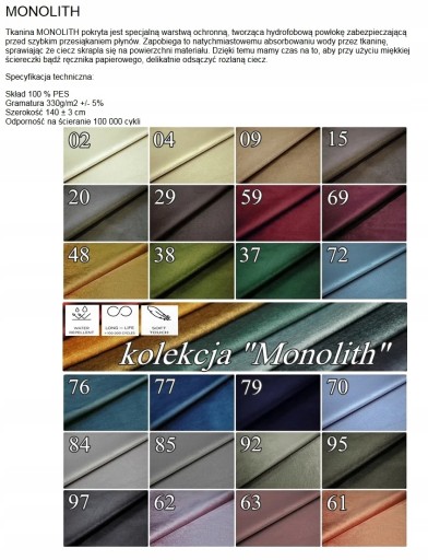 ⭐ Poniżej przedstawiamy próbniki tkanin, z jakich dowolnie można wybrać kolor mebla ⭐