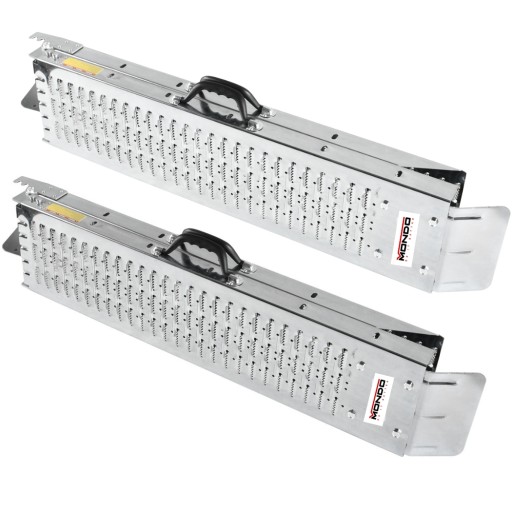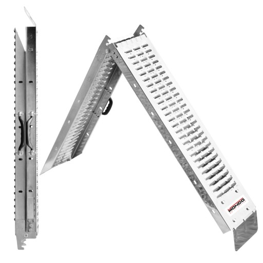 Rampy załadunkowe dostarczane są w praktycznym zestawie 2 sztuk i pomagają w łatwym załadunku motocykli, motorowerów, quadów, małych pojazdów, traktorów ogrodniczych, maszyn budowlanych itp.