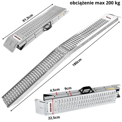 Zestaw ramp ma maksymalną ładowność do 400kg lub 200kg gdy do załadunku używana jest pojedyncza rampa.