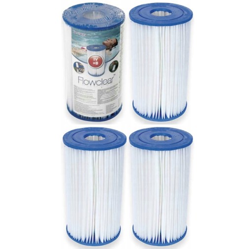 4 oryginalne filtry do pomp basenowych typu IV firmy BESTWAY wykonany z materiału dakronowego łatwy do czyszczenia i wymiany.