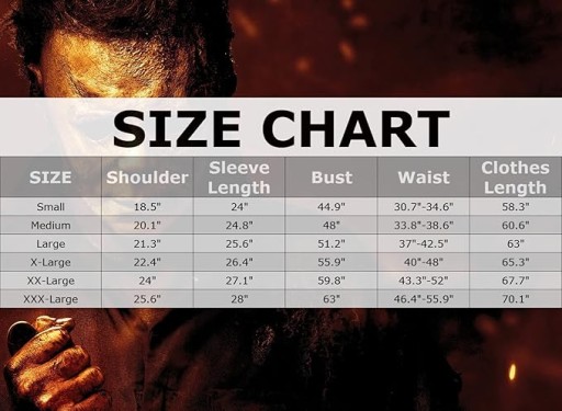 Materiał kostiumu dla dorosłych: kostium Michaela Myers jest wykonany z wysokiej jakości włókna poliestrowego, miękkiego, oddychającego. Nóż Michael Myers jest wykonany z tworzywa sztucznego, bezpieczny i przyjazny dla środowiska. Maska Michael Myers wykonana w 100% z naturalnego lateksu, przyjazna dla środowiska i nietoksyczna.