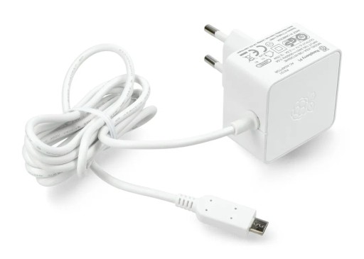 Oryginalny zasilacz w kolorze białym stworzony przez fundację Raspberry Pi. Zasilacz dedykowany jest do zasilania minikomputerów Raspberry Pi 3B+ / 3B / 3A+ / 2B / Zero / Zero 2 oraz innych urządzeń wyposażonych w gniazdo microUSB do zasilania. Napięcie wyjściowe zasilacza wynosi 5,1 V , a jego maksymalna wydajność prądowa to2,5 A . Długość przewodu zasilacza wynosi 1,5 m, a jego grubość to 18 AWG.