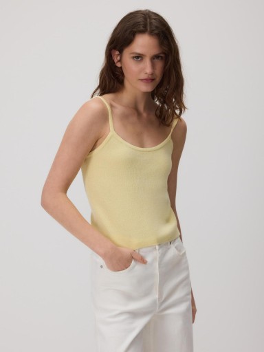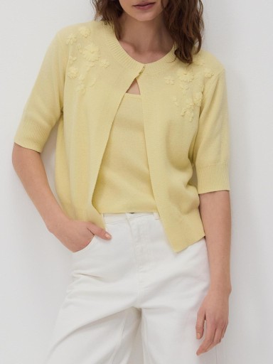 ŻÓŁTY DZIANINOWY SWETER Z TOPEM KRÓTKI RĘKAW OZDOBNY HAFT KWIATKI M