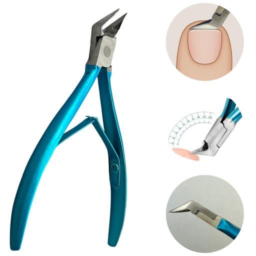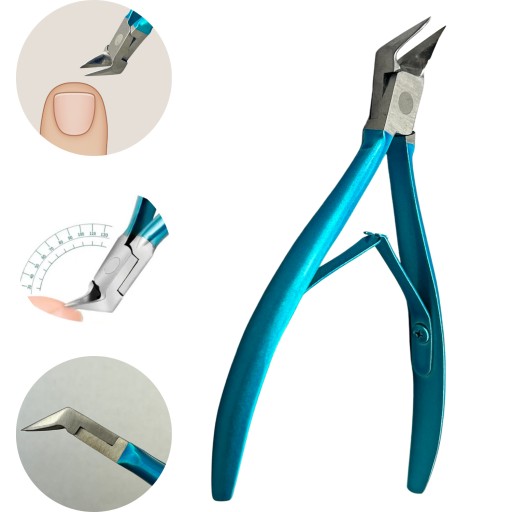 ✅ Obcinacz wyróżnia się charakterystycznie zakrzywioną końcówką pod kątem, który umożliwia precyzyjne i równe przycinanie paznokci, nawet w trudno dostępnych miejscach.
