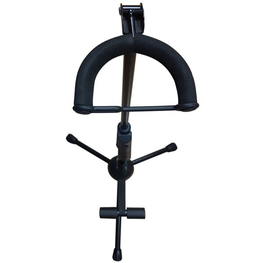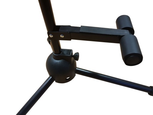 Stojak na dowolną gitarę, mocowanie za główkę instrumentu, system regulacji wysokości obsługiwany jedną ręką, regulacja wysokości od 78 do 100 cm, wszystkie części dotykające instrumentu mają piankowe podłoże, aby nie zarysować gitary, waga 1.3 kg, kolor czarny.