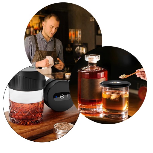 - Prosty w obsłudze – dla każdego Nie musisz być barmanem! Obsługa jest banalnie prosta: wsyp wióry, przyciśnij przycisk, uruchom zapłon i ciesz się aromatem dymu w kilka sekund. Pasuje do większości szklanek.